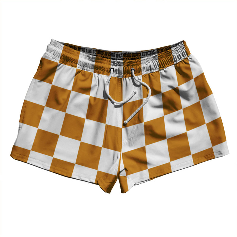- Checkerboard 2.5 Inches Orange Burnt and White 2.5" Swim Shorts Made in USA