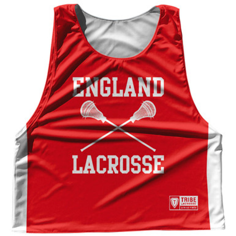 England Country Nations Crossed Sticks Reversible Lacrosse Pinnie Made In USA - Red & White
