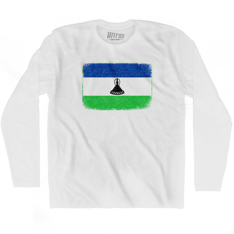 Lesotho Country Flag Adult Cotton Long Sleeve T-shirt - White