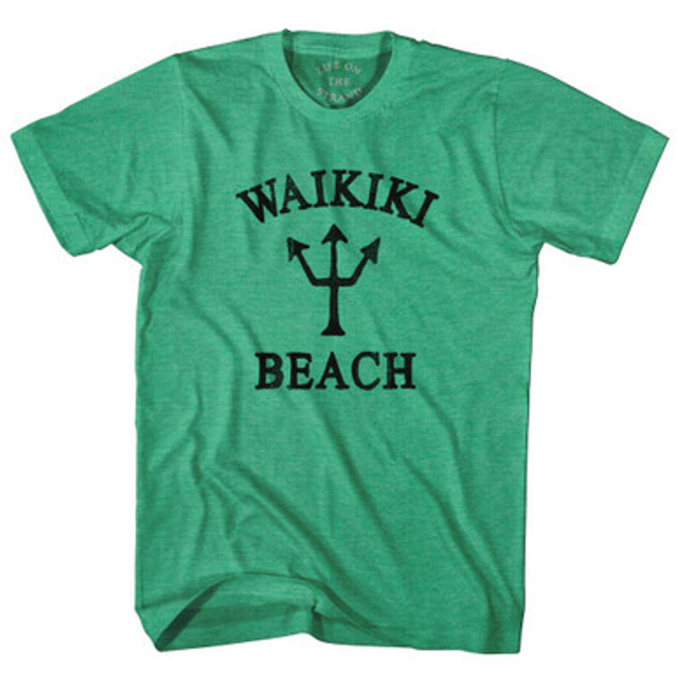 Hawaii Waikiki Beach Trident Adult Tri-Blend T-Shirt - Heather Green